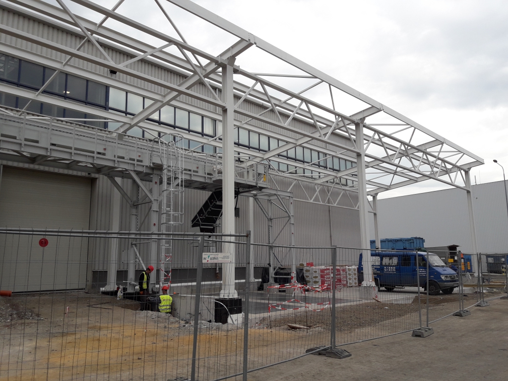 OPIS: Inwestycja polega na budowie kanału technologicznego na potrzeby ewakuacji złomu, nowopowstający kanał stanowi kontynuację wykonanego już kanału wewnątrz hali. Kanał będzie posiadał formę żelbetowej „skrzyni” o grubości dna 40 cm, ścian i stropu o grubości 25 cm. Inwestycja obejmuje: kanał technologiczny, zadaszenie nad przenośnikiem taśmowym, wiatę stalową, śluzy.